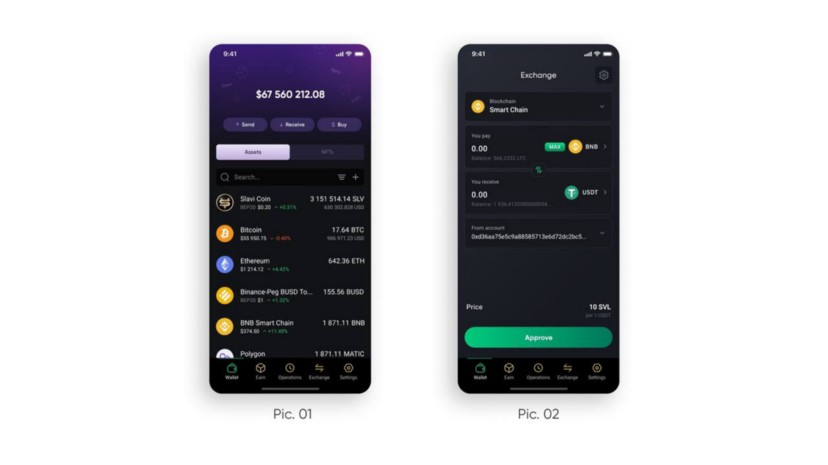 Slavi is Multi-chain wallet that supports swaps across 4 blockchains: Ethereum, BNB Smart Chain, Polygon and Metis Network. To use it, click on the “exchange” button on the tab bar.