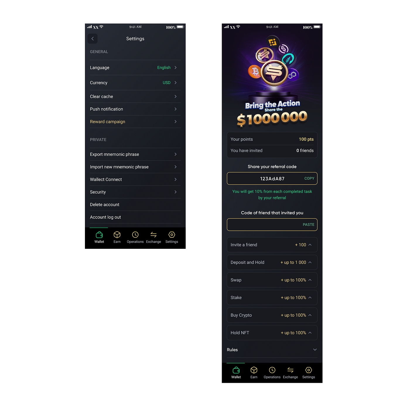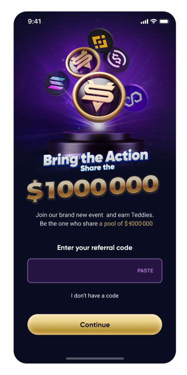Note: If you don’t have a code, or if you already have the Super DApp installed and have not entered the code before, you can find a referral code in Settings. The referral code is generated per mnemonic, each code is unique and does not change.